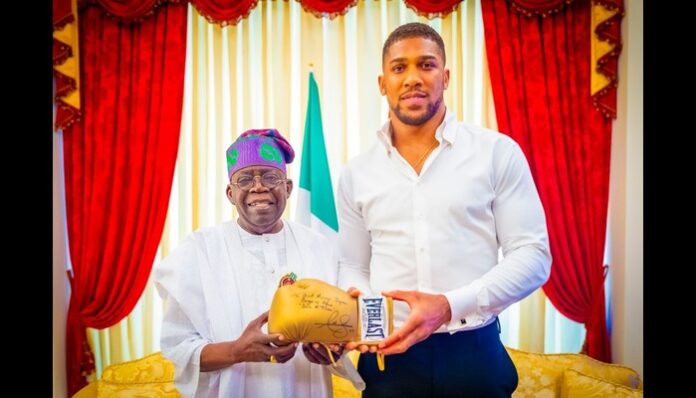 As a token of goodwill, Joshua presented President Tinubu with an autographed boxing glove, inscribed with the message: “To the Great Asiwaju Jagaban Borgu of Africa, Bola A. Tinubu.” The Presidency’s official X handle shared photos from the visit, with a caption that read: “President Bola Tinubu receiving an autographed glove from former World Heavyweight Champion, Anthony Joshua, when he visited the President at his residence in Lagos.”