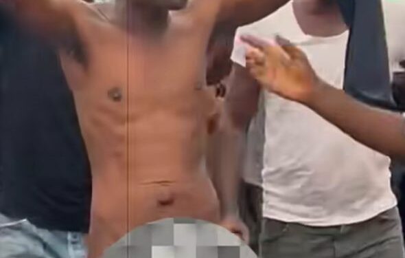 A video shared on social media shows the man removing his clothes and walking through the streets of Ojota, Lagos State, alongside other protesters. He joined in singing “Solidarity forever.”