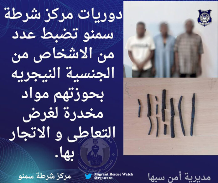 The Samnu Police Department in southern Libya has apprehended three Nigerian nationals on charges of drug trafficking.